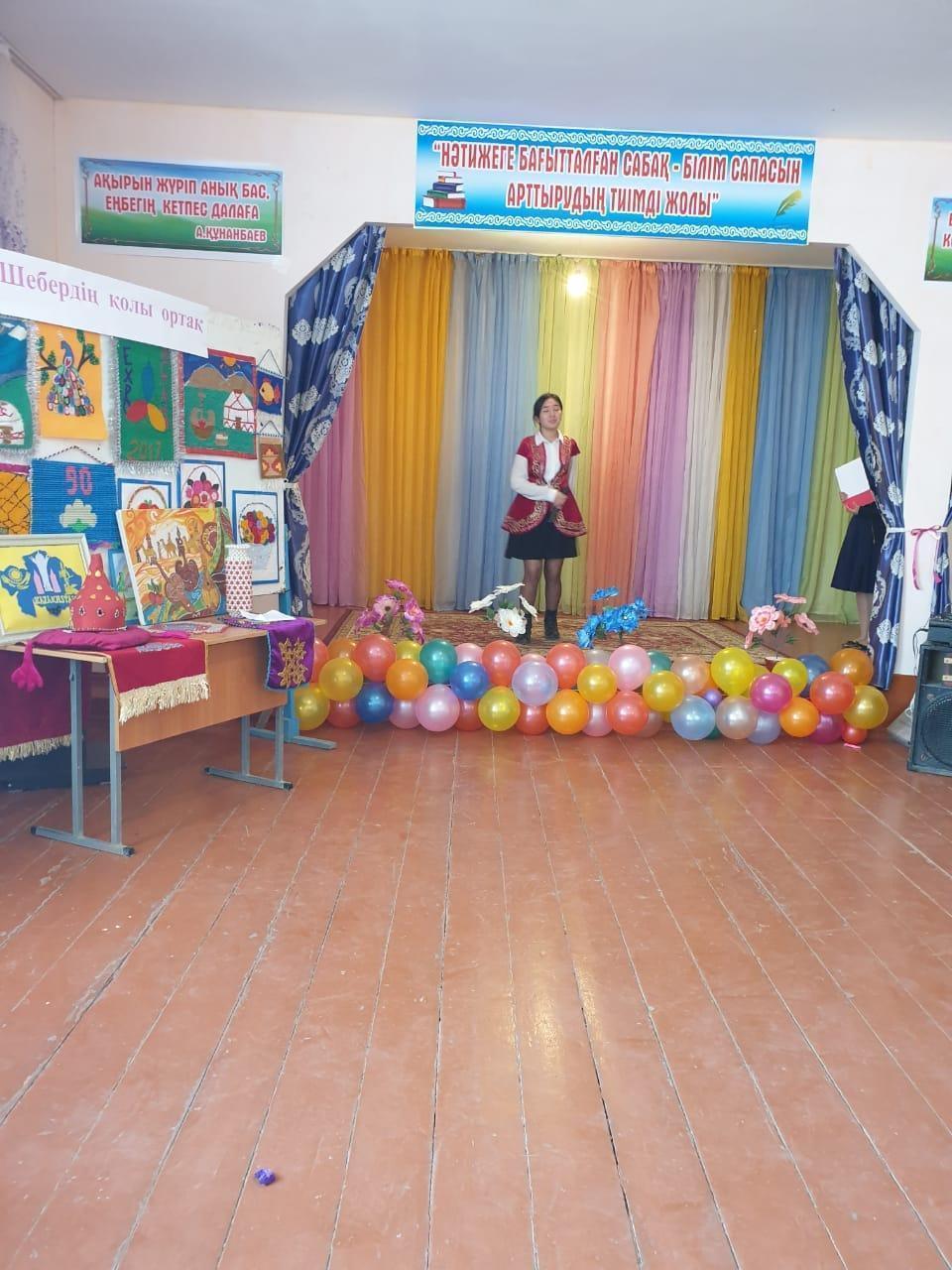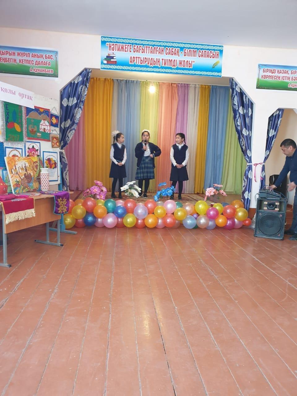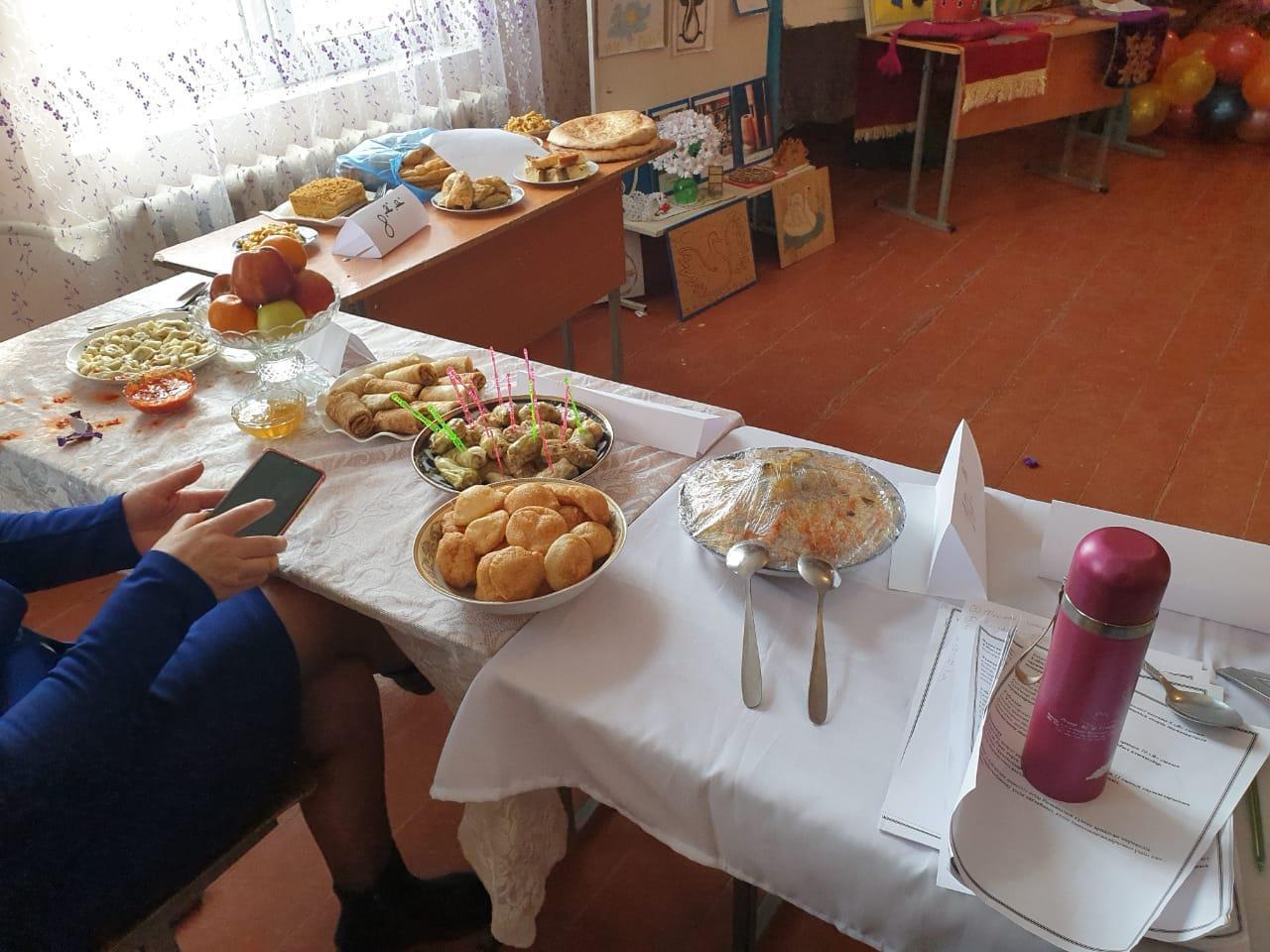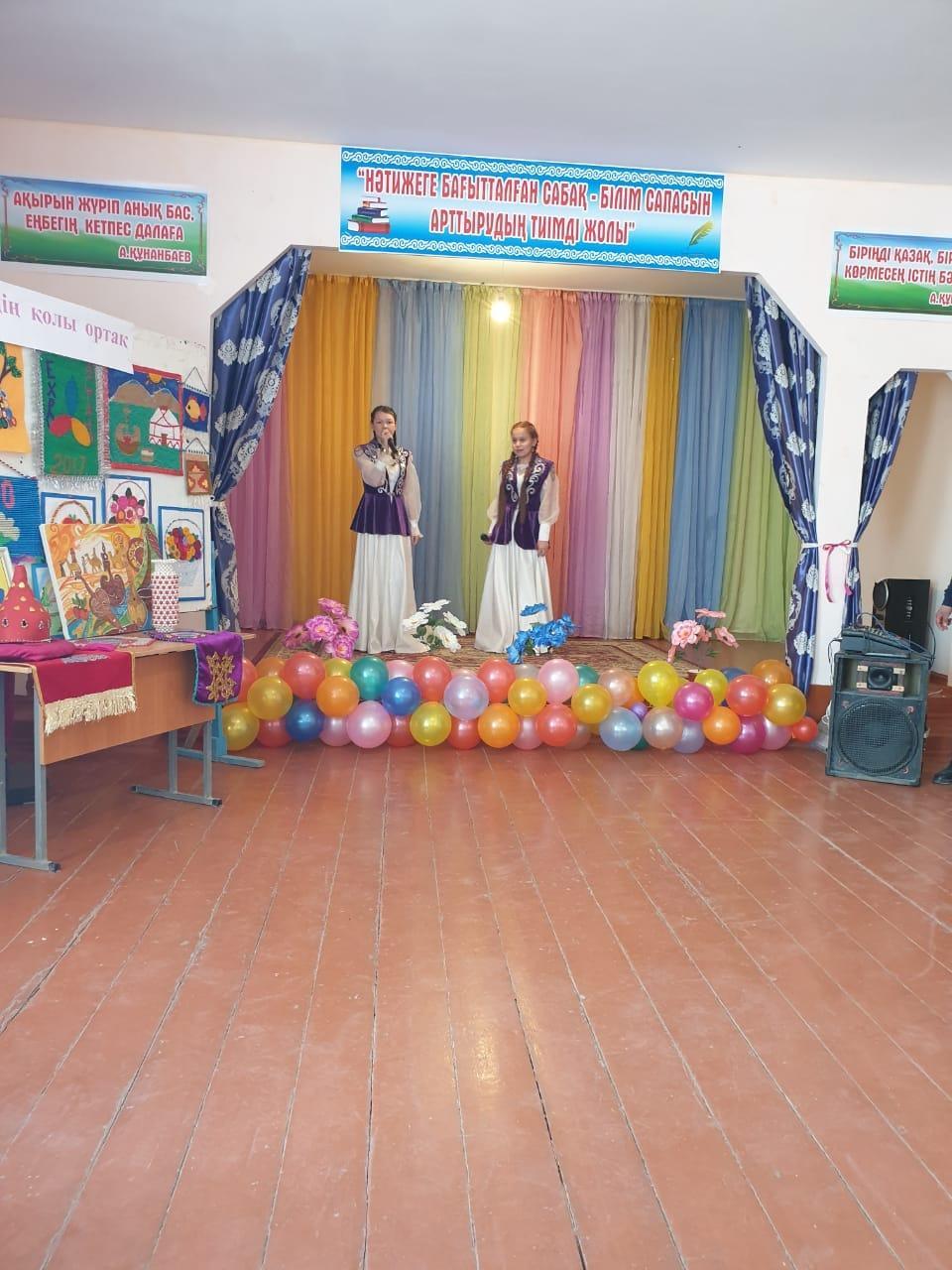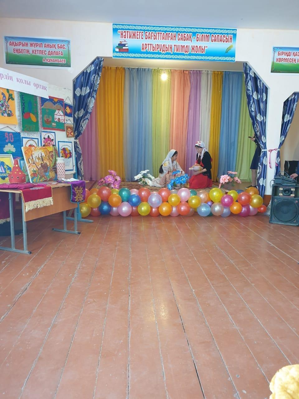 Қазақ халқының салт-дәстүрі бесікке салу мен қазақ биі, ұлттық тағамдарын дайындап келген 10 а,ә сынып оқушылары. 9 ә сынып оқушылары қазақ халқының ұлттық тағамын жасады. 9 в сынып оқушылары Тәжік ұлтының ұлттық тағамы "Куртоп" жасап, ұлттық билері мен тәжік тілінде құттықтау сөздері мен алғыстарын айтты. 7в сынып оқушылары Әзербайжан халқының ұлттық биі мен ұлттық тағамы долма жасады. Әзербайжан тілінде алғыстарын білдірді. 8 в сынып оқушылары Орыс халықының ұлттық билері мен тағамдарын дайындап келді. 11в сынып оқушылары Татар халықының ұлттық тағамы Ичпучмак пен ұлттық биін билеп, татар тілінде құттықтау сөздері мен алғыстарын білдірді. 9в сынып оқушылары өзбек халқының ұлттық биі мен ұлттық тағамы плов жасап, ұлттық тілінде алғыстарын білдірді. 8 а,ә сынып оқушылары Қазақтың ұлттық биі мен, әнін орындап, ұлттық тағамын жасады. 10 а, ә сынып оқушылары Қазақтың ұлттық әнін орындап, ұлттық тағамын көрсетті. Іс-шараға қатысқан оқушылар ұстаздар мен оқушыларға өз алғыстарын білдірді.