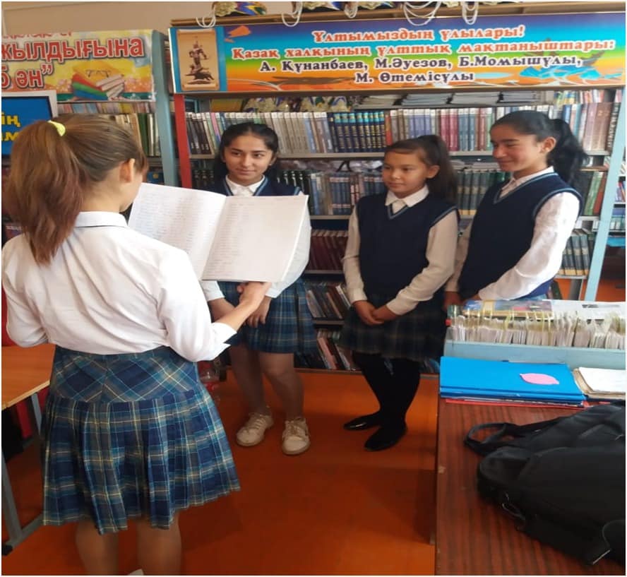Түркістан облысы, Мақтаарал ауданы, Адами әлеуетті дамыту бөліміне қарасты "Т.Әубәкіров атындағы жалпы орта мектебі" коммуналдық мемлекеттік мекемесінде Мектебіміздің кітапханашылары А.Ибраймова мен А.Ғаниеваның ұйымдастыруымен «Жас қаламгер» тобы құрылды. Топ құрамына 5-8 сынып оқушылары қамтылды.