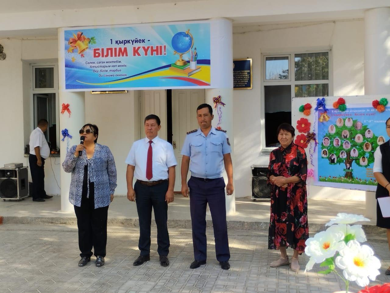 ДТІЖО Р.Т.Аманова ұстаздар мен оқушыларды жаңа 2022-2023 оқу жылымен құттыктап ,сәттілік тіледі. Іс шара қонақтары ауыл инспекторы Н. Бексеитов, ата-аналар комитеті мүшесі Ж.Курьязова өз жылы лебіздерін білдірді.