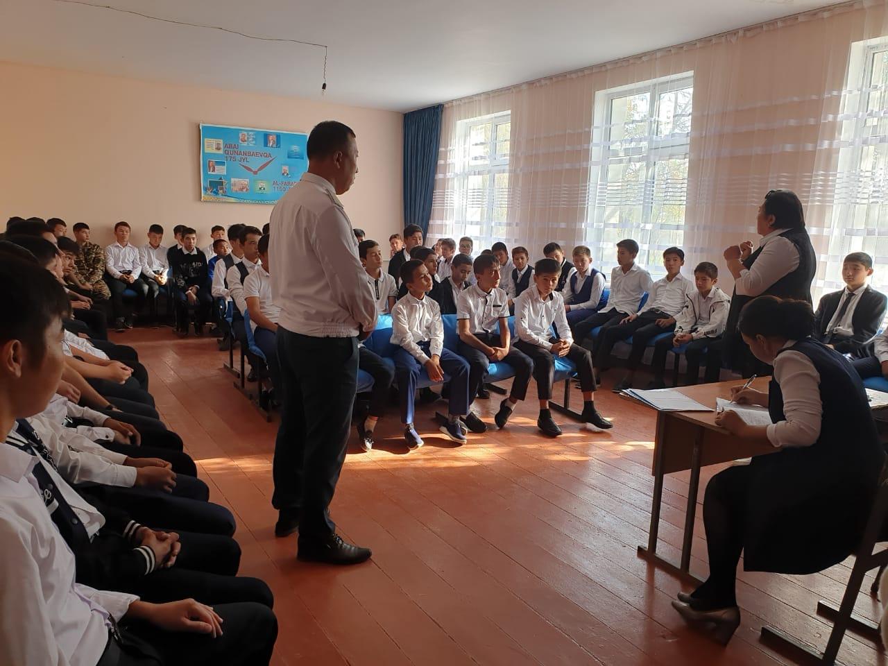 ⚜️Түркістан облысы, Мақтаарал ауданы, Адами әлеуетті дамыту бөліміне қарасты "Т. Әубәкіров атындағы №43 жалпы орта мектебі "коммуналдық мемлекеттік мекемесінде ДТІЖО Р.Т.Аманованың ұйымдастыруымен 8-11 сынып оқушыларымен "Жігітке жеті өнер де аз" тақырыбында ұлдар кеңесі өткізілді.