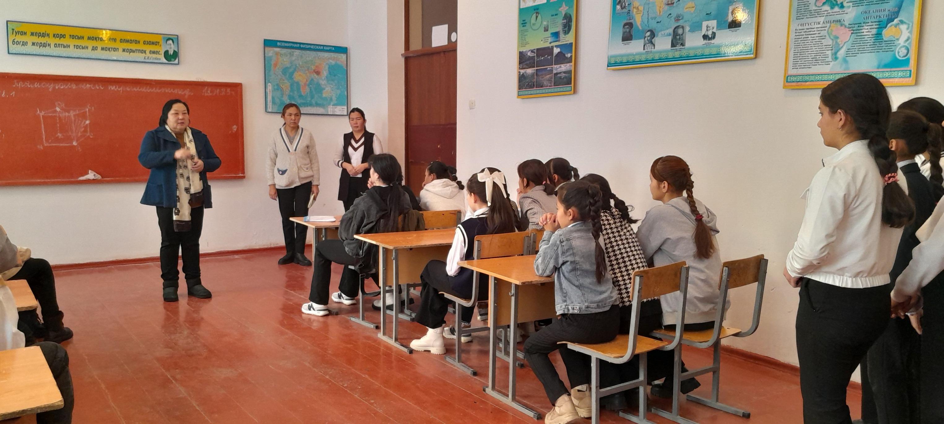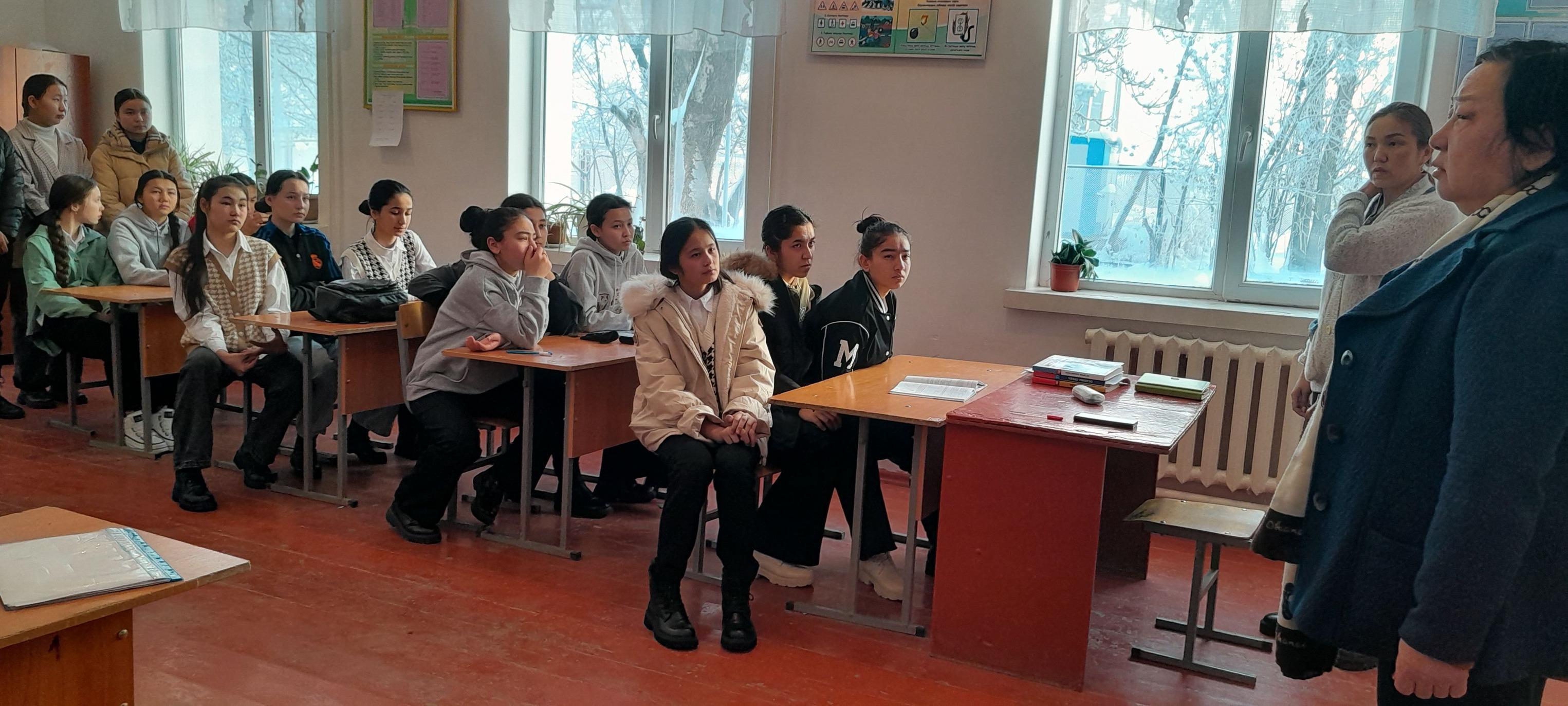 Түркістан облысы, Мақтаарал ауданы, Адами әлеуетті дамыту бөліміне қарасты "Т. Әубәкіров атындағы №43 жалпы орта мектебі "коммуналдық мемлекеттік мекемесінде 11.01.2022ж. күні ДТІЖО Р.Т.Аманованың ұйымдастыруымен 8-11 сынып қыздарымен «Қызға қырық үйден тыю» тақырыбында қыздар кеңесі өткізілді. ДТІЖО Р.Т.Аманова қыздарға жүріс-тұрысы, жеке бас гигиенасы, мектепте өзін-өзі ұстау тәртібі, мектеп формасын сақтауы жалпы қыз балаға тән сыпайылық пен инабаттылық қасиеттерін сақтауы туралы айтып өтті. Қазіргі заманда қыз тәрбиесі мен ұл тәрбиесіне ерекше мән беруді қажет етеді.Ұл тәрбиелей отырып,жер иесін тәрбиелейміз,қыз тәрбиелей отырып, ұлтты тәрбиелейміз-деп бекер айтпаса керек. Халқымыздың ерте кезден- ақ Адамгершілікті, әдепті жоғары бағалай білген. Жақсы тәрбие алған үлгі өнеге көрген ұлдар жау келгенде де жайдақ тақа мініп шабатын өжет,батыл, адал, жеріне туған халқына ыстық ықыласты, үлкенге де , кішіге де қамқор бола білген ғой. Әдептілік,инабаттылық сыйлау жағынан халқымыз алдыны жан салмаған. Ұл бала –қазақта шаңырақ иесі, ер азамат , ата-ананың түтінін түтетуші . Ер бала өз ата-анасына ,іні-қарындастарына қамқоршы , ел қорғаны болып саналады деп өз сөзін қорытындылады.