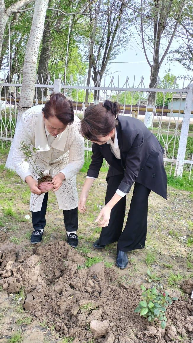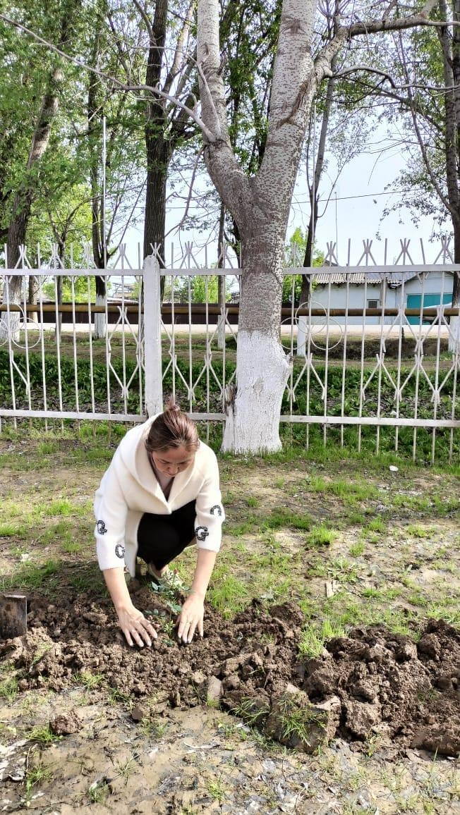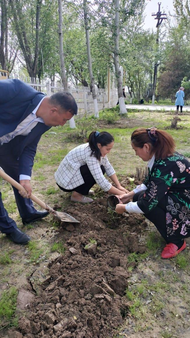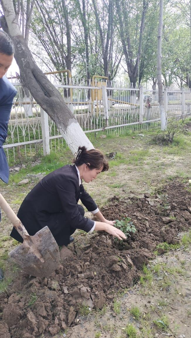 Түркістан облысы, Мақтарал ауданы адами әлеуетті дамыту бөліміне қарасыты Т.Әубәкіров атындағы №43 ЖОМ, коммуналдық мемлекеттік мекемесінде Әкімшілік қызметкерлер көгалдандыру жұмыстары жүргізді.