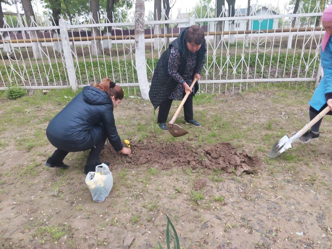 Көгалдандыру жұмыстарына Әкімшілік қызметкерлер белсене қатысып, мектеп ауласына гүлдер отырғызылды.