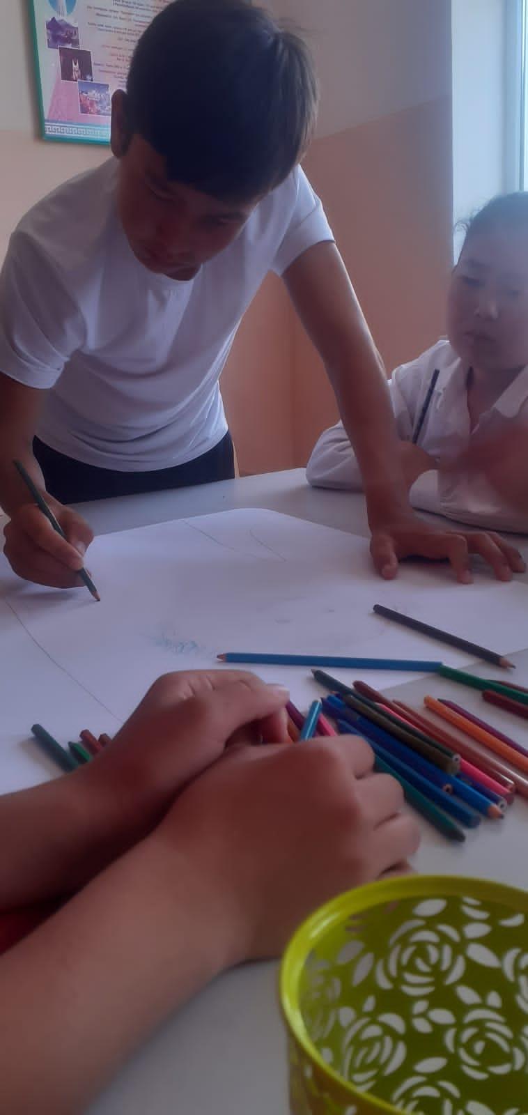 Мақсаты: оқушыларға қорқыныш сезімі туралы мағлұмат бере отырып, сурет салу арқылы бойындағы қорқыныш сезімдерін жою; өзара қарым-қатынастарын нығайту.