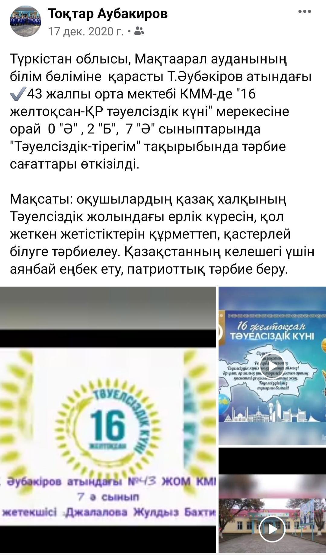 Іс-шаралар » Общеобразовательная школа им.Аубакирова. Мақтаарал ауданы. Мактааральский район