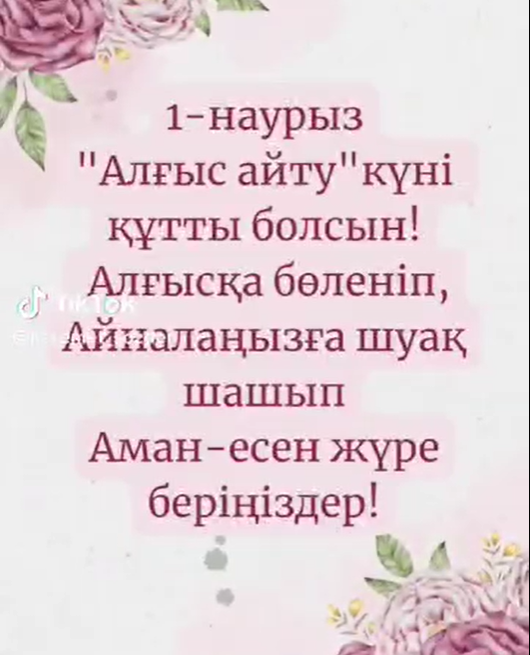 Түркістан облысы, Мақтаарал ауданының білім бөліміне қарасты N43 "Т.Әубәкіров жалпы білім беретін мектеп" коммуналдық мемлекеттік мекемесінде 2024 жылдың 1 наурыз күні "Біртұтас тәрбие бағдарламасы" жоспарын негізге ала отырып, білім алушыларға ұлттық, отбасылық құндылықтарды насихаттау мақсатында бастауыш сынып оқушылары 1-Наурыз Алғыс айту күніне арналған "Алғыс айту парызым" тақырыбында өз тілектерін білдірді.
