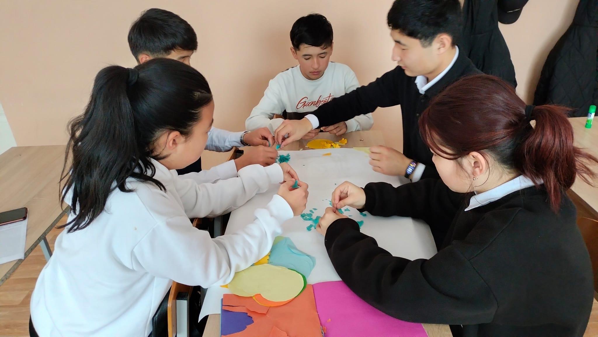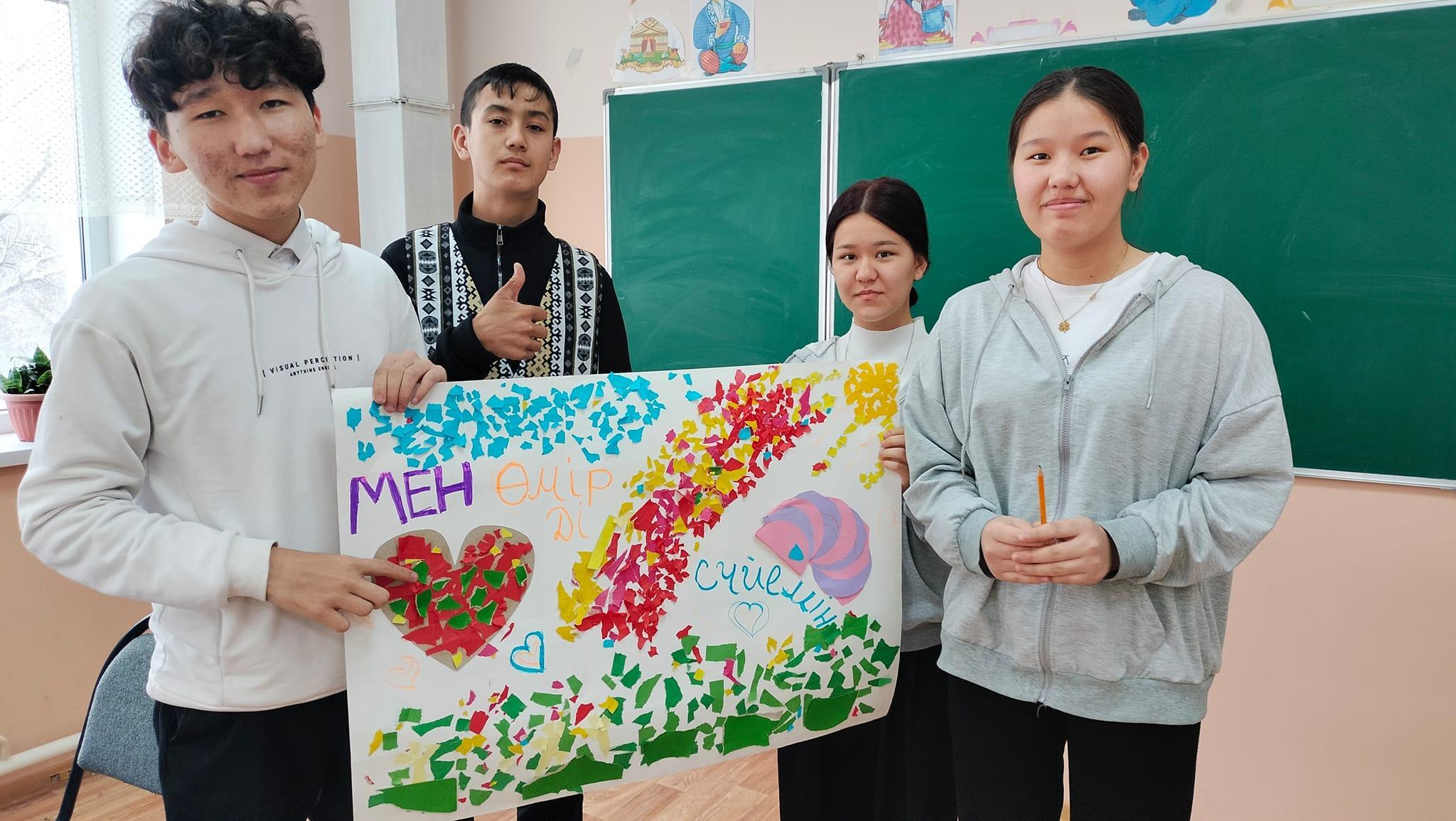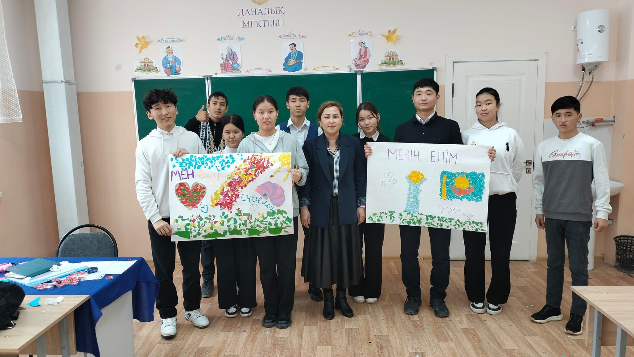 13.03.2024 күні 10 сынып оқушыларымен "Бояулар әлемі" арт терапиясы, "Өзіме, көршіме" тренингы