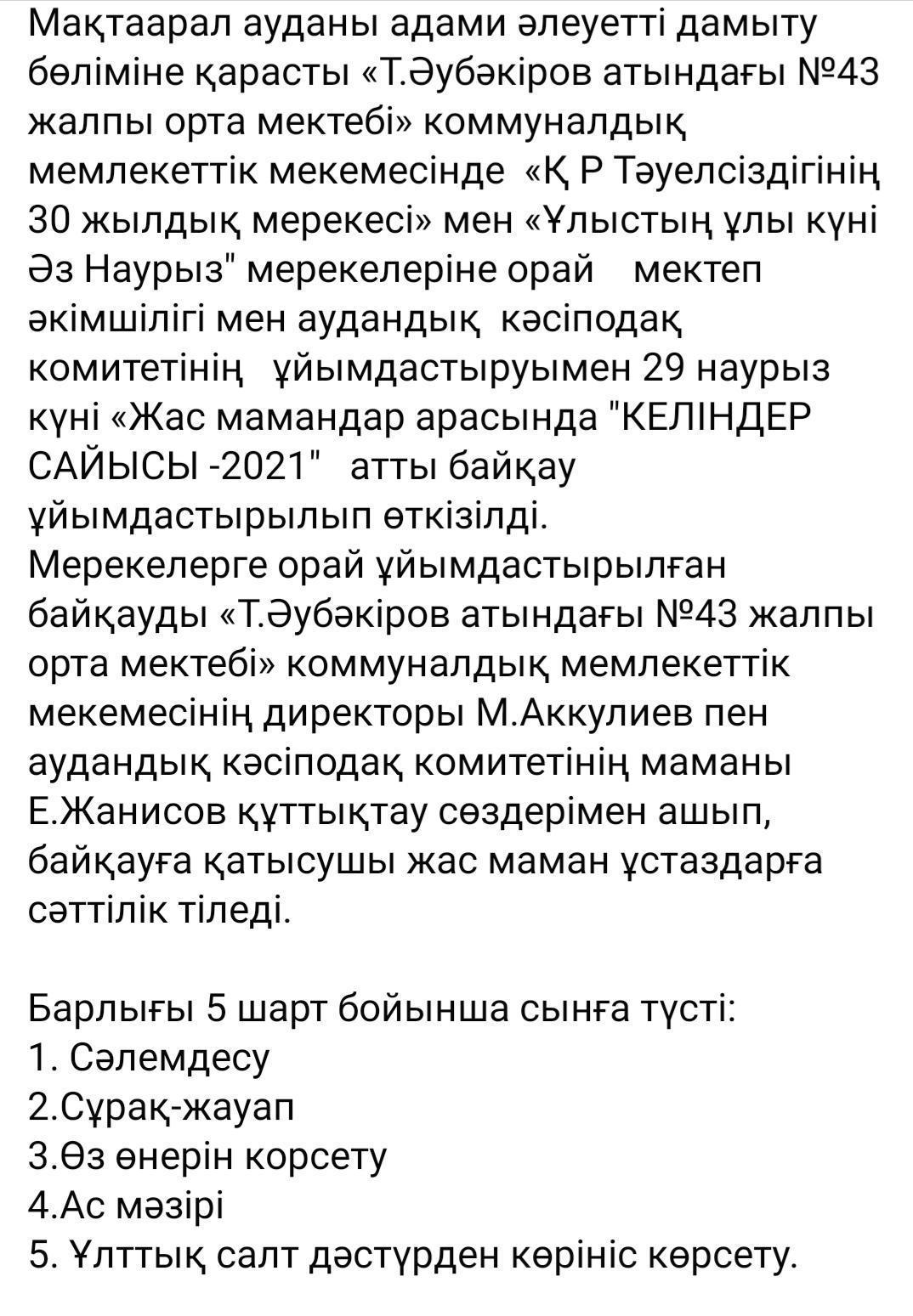 Іс-шаралар » Общеобразовательная школа им.Аубакирова. Мақтаарал ауданы. Мактааральский район