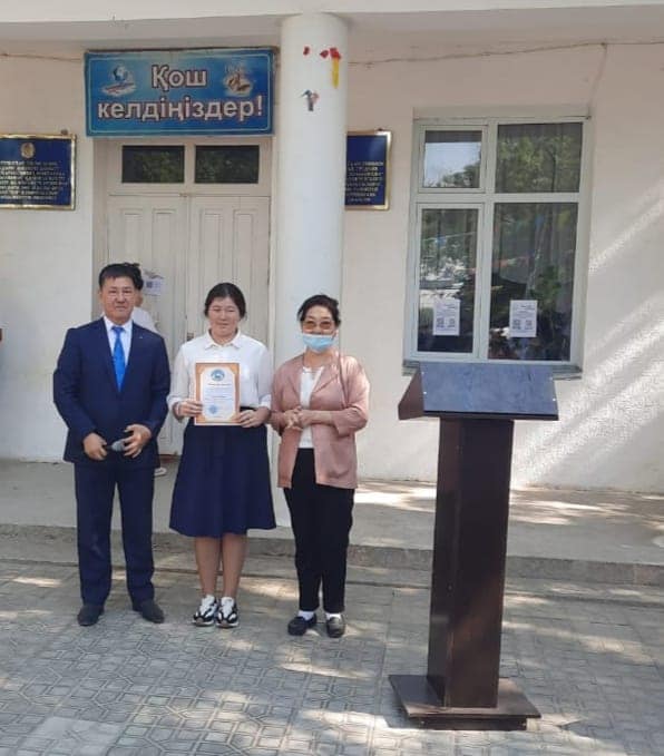 Бас жүлдені иеленген жеңімпаз оқушы Кеңесбай Жарқынай МЕДАЛЬ және ДИПЛОММЕН және жетекшісі Алибекова Тарбия Кантургановна Алғыс хатпен марпатталды