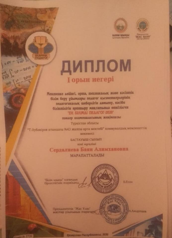 Жетістіктеріміз » Общеобразовательная школа им.Аубакирова. Мақтаарал ауданы. Мактааральский район
