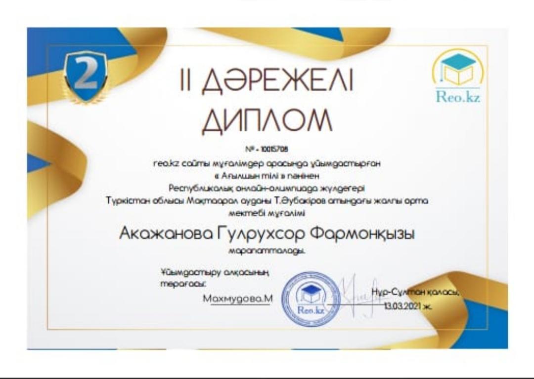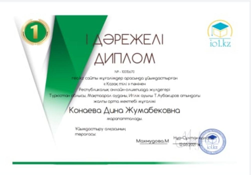 Жетістіктеріміз » Общеобразовательная школа им.Аубакирова. Мақтаарал ауданы. Мактааральский район